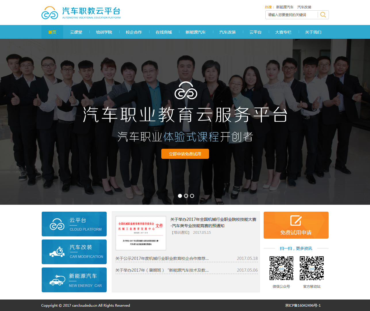 逗號(hào)網(wǎng)絡(luò)與汽車職教云平臺(tái)簽訂了長(zhǎng)期的戰(zhàn)略合作服務(wù),為汽車職教云平臺(tái)提供網(wǎng)站建設(shè)、APP開(kāi)發(fā)、微信開(kāi)發(fā)、手機(jī)網(wǎng)站建設(shè)等一系列網(wǎng)絡(luò)服務(wù)。