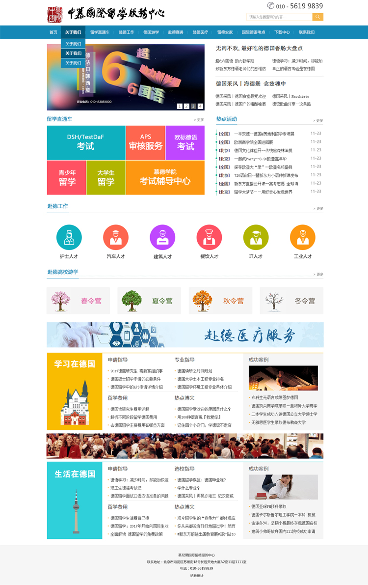 德國留學(xué)服務(wù)中心|北京德國游學(xué)培訓(xùn)基地辦校宗旨系在華各年齡階段人士學(xué)習(xí)德語、了解德國歷史與掌握德意志本土傳統(tǒng)文化。為實現(xiàn)此目標(biāo),學(xué)院將科學(xué)合理規(guī)劃教學(xué)方法與手段,因時施教、因地施教、因人施教、因事施教。逗號網(wǎng)絡(luò)為德國留學(xué)服務(wù)中心|北京德國游學(xué)培訓(xùn)基地提供網(wǎng)站建設(shè)服務(wù).