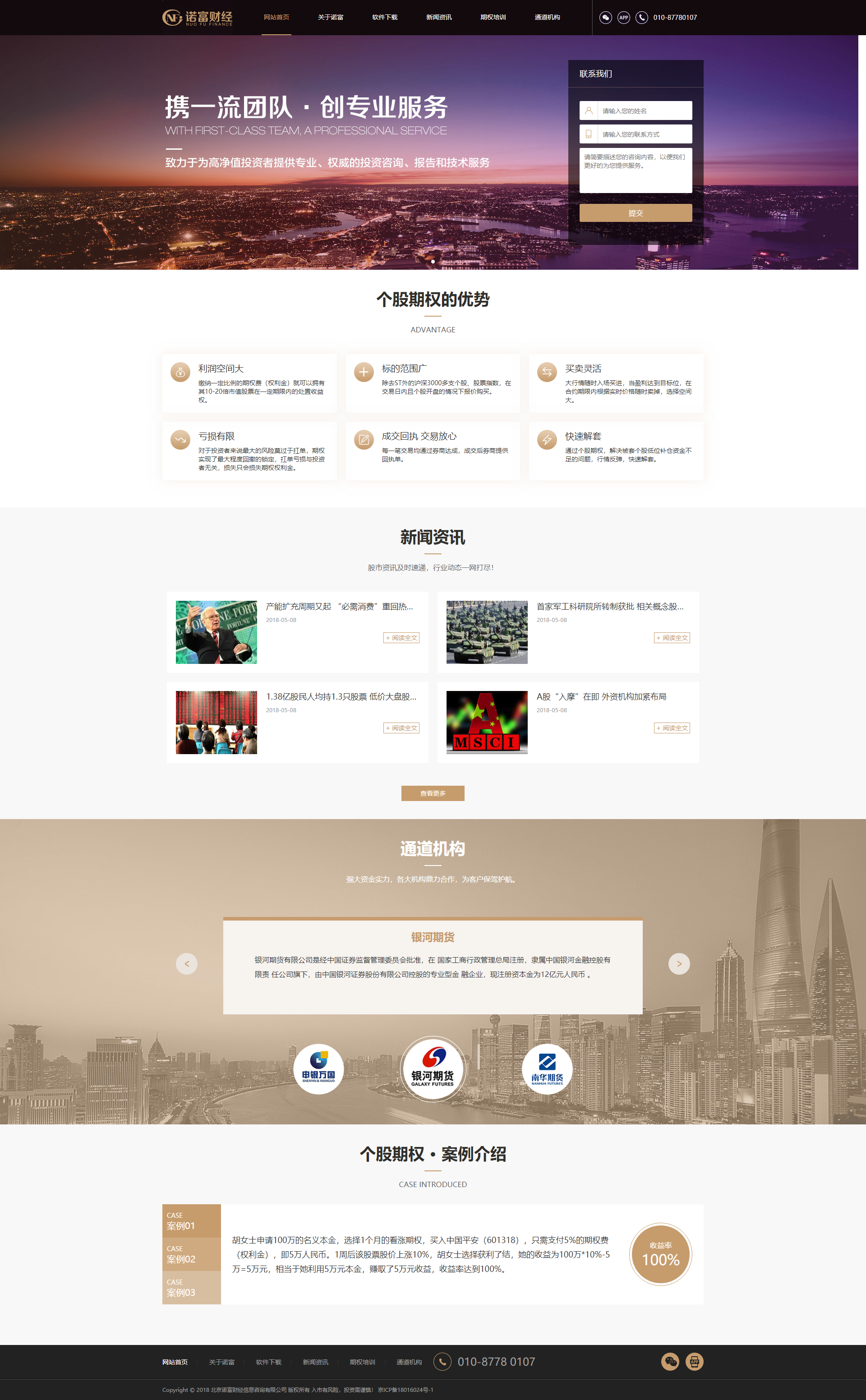 北京諾富財經(jīng)信息咨詢有限公司是國內(nèi)先進的互聯(lián)網(wǎng)投資經(jīng)紀(jì)咨詢管理機構(gòu),行業(yè)早批進入期權(quán)市場機構(gòu)平臺之一,長期專注于股票、期權(quán)等投資咨詢和金融技術(shù)服務(wù)領(lǐng)域,經(jīng)過多年以來的市場耕耘,在個股期權(quán)市場已經(jīng)取得不俗的成績。逗號網(wǎng)絡(luò)為“北京諾富財經(jīng)信息咨詢有限公司”提供網(wǎng)站建設(shè)服務(wù)。