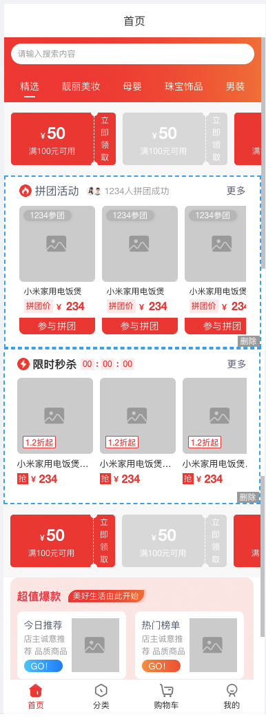 秒殺 加價購 預售 滿額減 滿額贈 滿額打折 (拼團手機端 H5 小程序 微信公眾號)