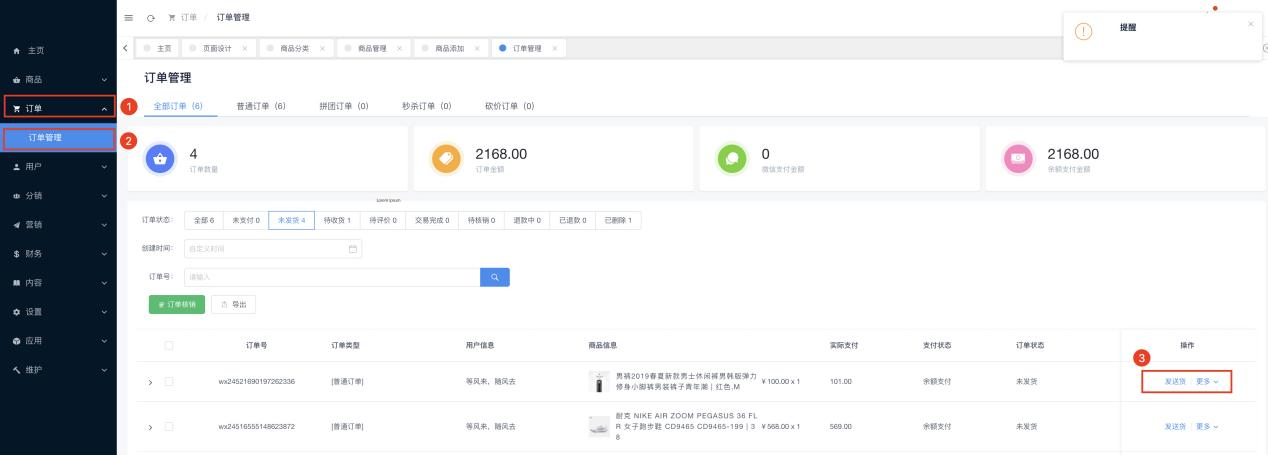 1、訂單列表(搜索篩選/訂單回收站/批量刪除/導入導出)